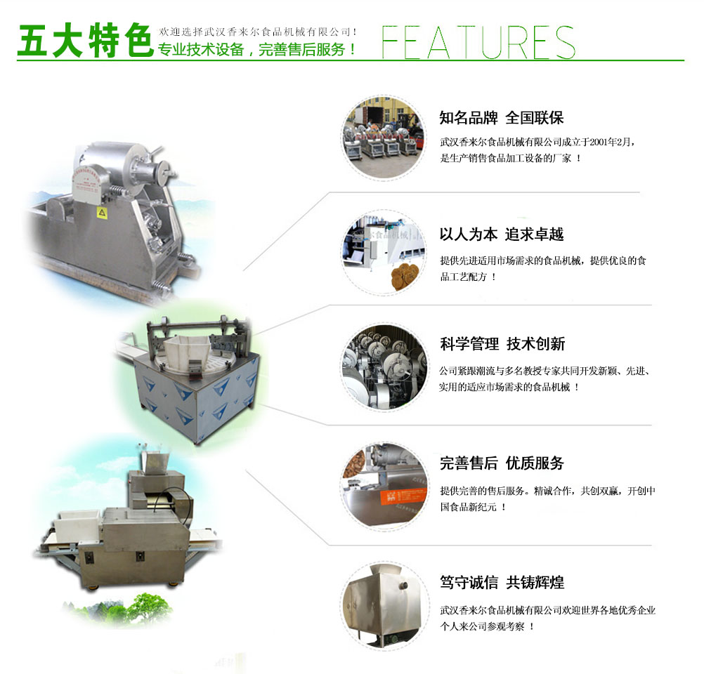 武漢香來爾食品機械有限公司成立于2001年2月,是生產(chǎn)銷售休閑食品加工設(shè)備的廠家。公司緊跟市場潮流與華工、華農(nóng)多名共同開發(fā)新穎、實用的適應(yīng)市場需求的食品機械,自有車、刨、鉆、銑、剪板、折彎等先l進(jìn)機床100多臺 套。7年誠信通會員,產(chǎn)品出口拉美、非洲、東南亞、歐洲等很多國家和地區(qū),國內(nèi)很多食品企業(yè)都是我們的合作伙伴。目前公司專門設(shè)立一個的售后 服務(wù)班子,在公司逐步發(fā)展強大的過程中,一直堅持售后服務(wù)的同步發(fā)展,精良的食品設(shè)...